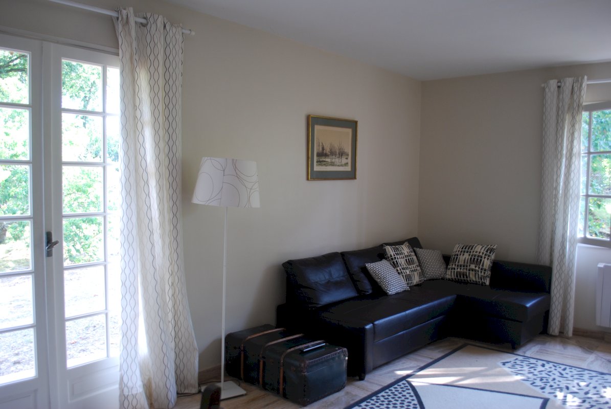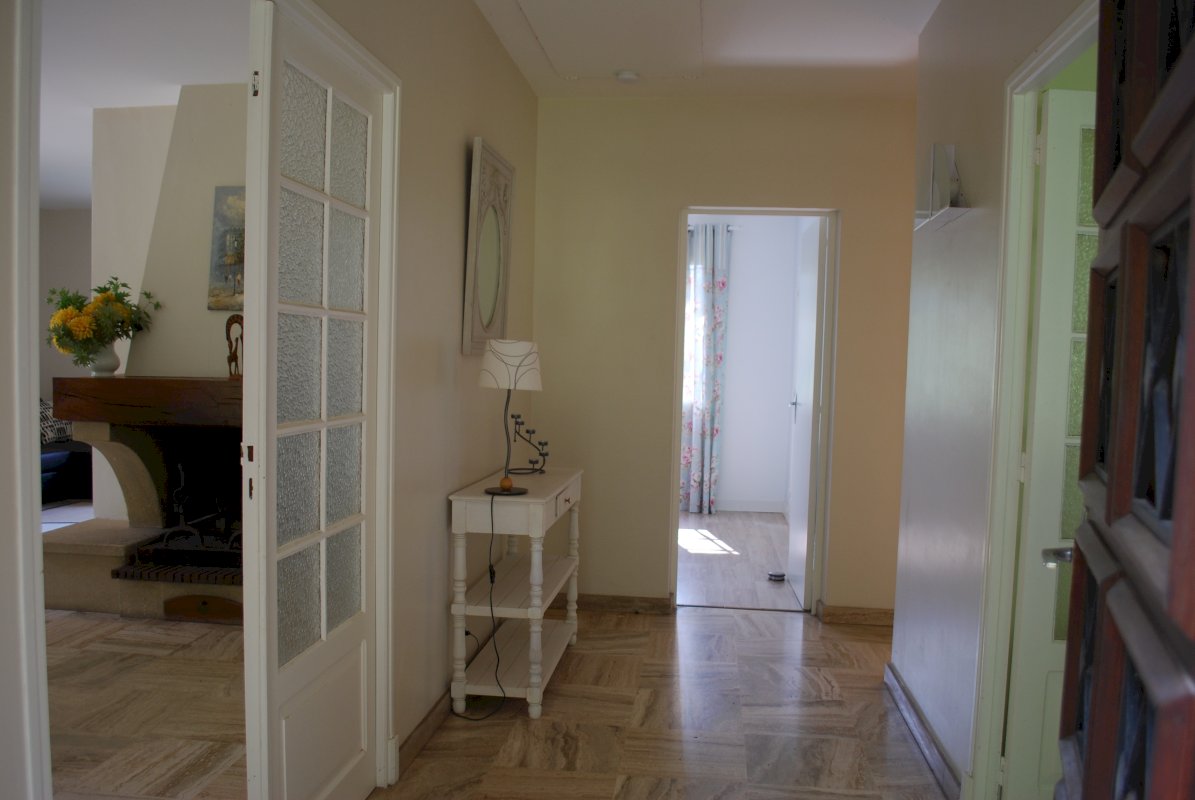 Elle se compose de 2 chambres avec placard et d’un grand salon lumineux avec cheminée. Chauffage électrique actuel, une cuisine d'été deservant deux superbes terrasses de 17 m2, cernées par un écrin de verdure. Tout à l'egout, vide sanitaire et étage aménageable de 30m2
