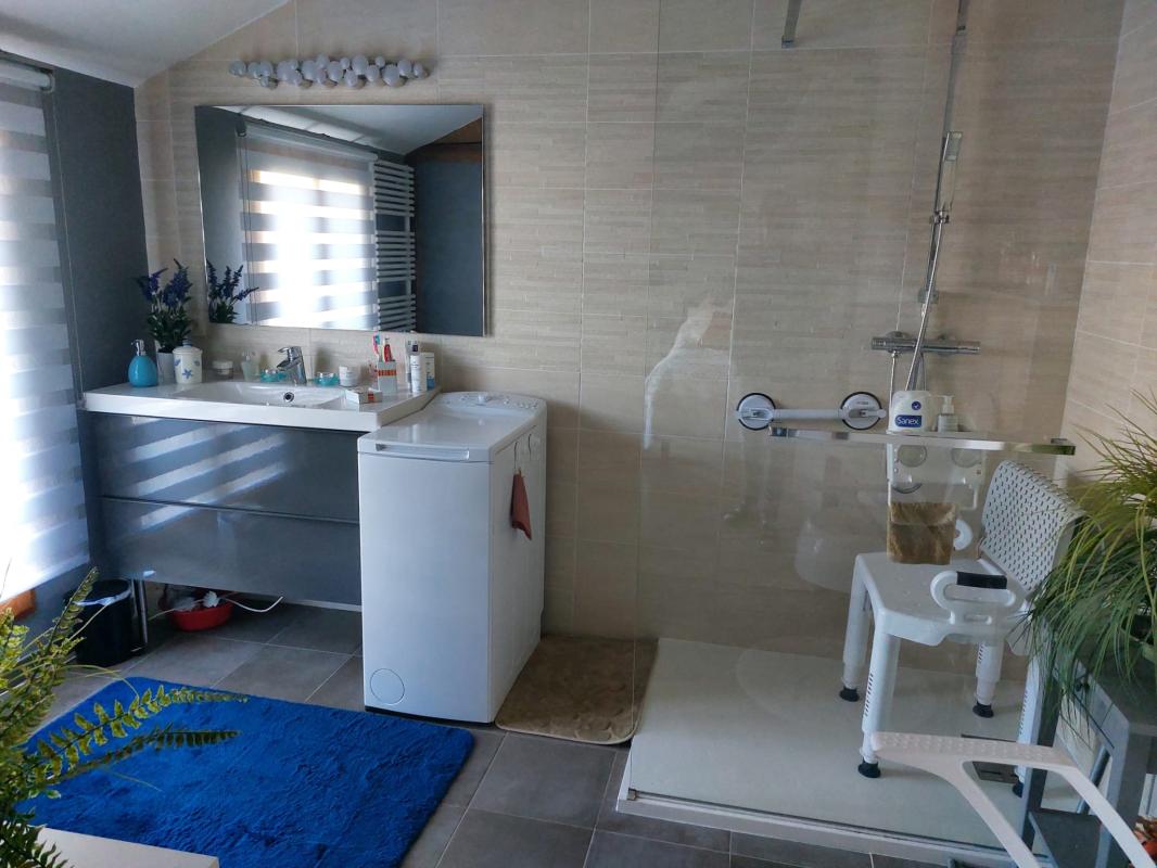 L'escalier est muni d'un monte-personne, à l'étage le pallier donne accès à 3 chambres (30m2, 17m2 et 15m2) chacune ayant sa propre salle d'eau avec wc.