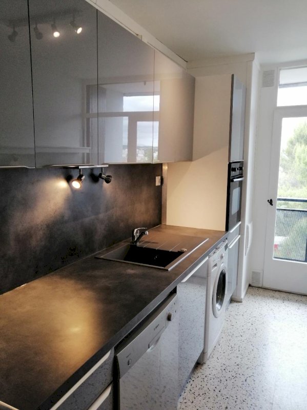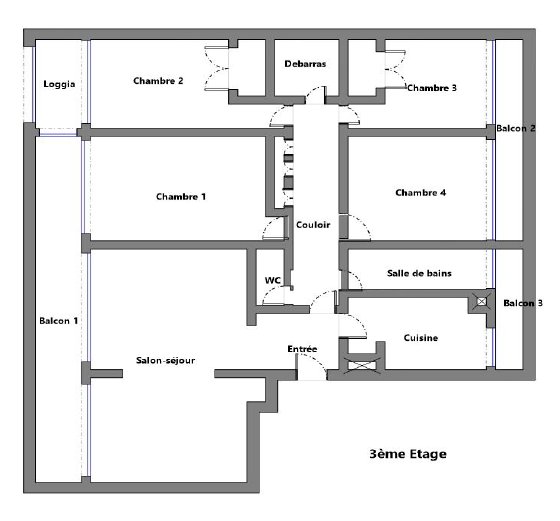 Montpellier, quartier Saint Clément, T5 traversant de 114m² (Carrez), orienté SE/NO, situé au 3ème et dernier étage (sans ascenceur) d’une résidence des années 70. Salon/séjour SE donnant sur un grand balcon. Cuisine équipée, avec double vitrage, orientée NO, donnant sur un petit balcon. SDB avec fenêtre à double vitrage. Grand couloir donnant sur quatre chambres (ou bureau) dont 2 avec climatisation réversible (2024), une avec loggia et double vitrage. Box individuel dans parking collectif fermé, cave. Chaudière à condensation (2023). Diagnostics conformes, classe énergétique D. Proximité immediate écoles maternelle et primaire, collège, lycée, arrêt tram.