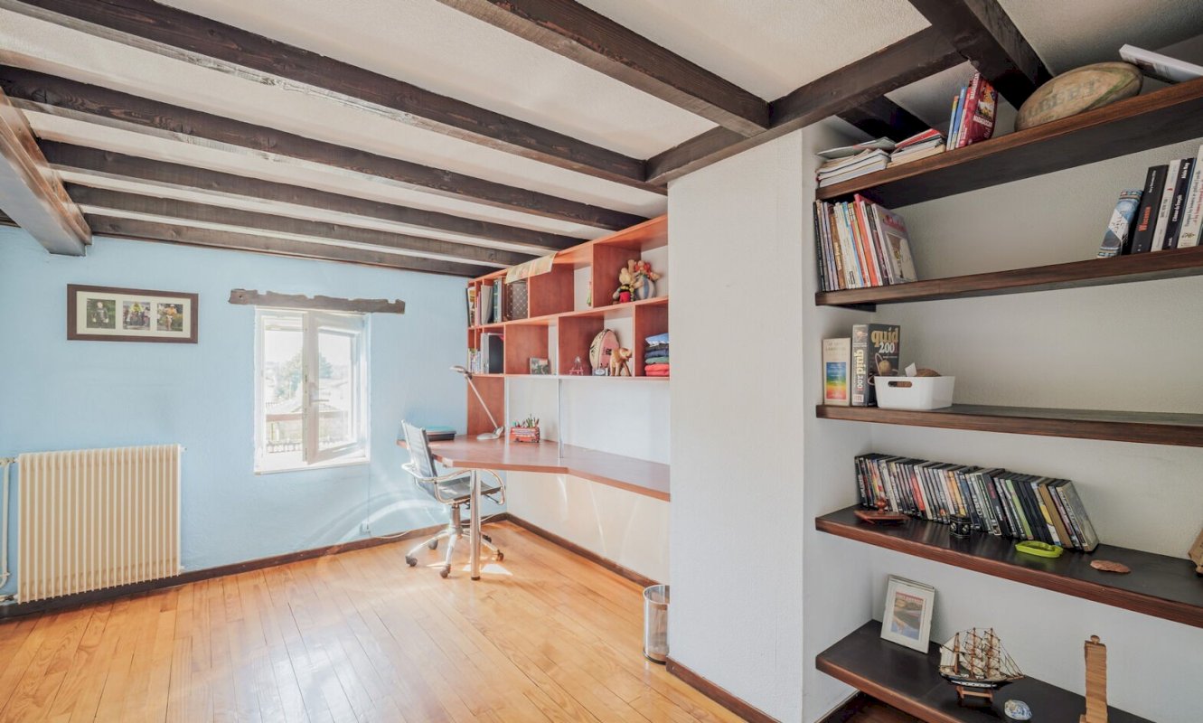 Au deuxième étage, vous trouverez quatre chambres supplémentaires, une salle d’eau moderne et un toilette indépendant et aussi d’une pièce atypique avec mezzanine et charpente apparente, idéale pour un bureau, atelier ou espace créatif.