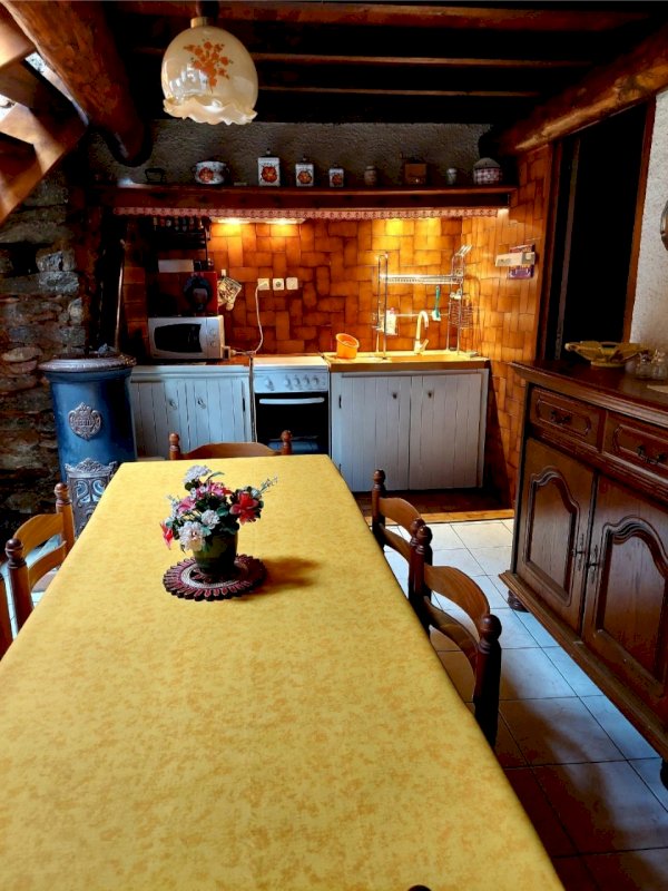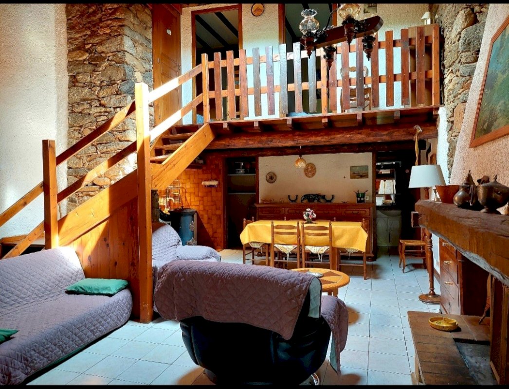 Vends Maison de Montagne F3 + Garage de 50 M2 sur un charmant village de Montagne dans les Pyrénées-Orientales à 1500 m d'altitude à FONTRABIOUSE. 67 m2 habitables avec un Hall d'entrée avec un grand placard ensuite une pièce principale coin cuisine plus un cellier, salle d'eau et sur la mezzanine 1 WC et 2 petites chambres. Idéale pour des vacances, proche des stations de ski... des Angles, Formiguères, la Quillane... L'été proche du Lac de Matemale avec toutes ses activités, Magnifiques randonnées et belle Grotte sur place. Grand garage de 50 m2 où vous pourrez mettre toutes vos affaires et une place de parking devant la maison dans une cour commune situé au centre du village. La maison est de style rustique pierres apparentes, poutres et grande cheminée, poêle Godin et chauffage électrique. Vendu meublé et équipé. Toiture à revoir (devis à votre disposition) quelques petites fuites au niveau du Velux et bord des murs rien de grave ni d'urgent. Pas de charge de Copropriété. Vente direct propriétaire, curieux et Agence s'abstenir Merci. J'étudie toutes propositions...