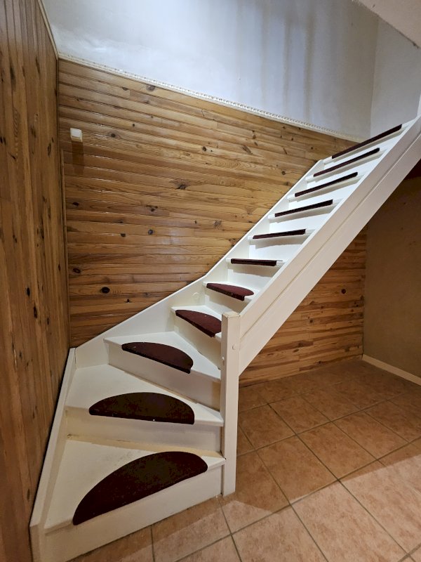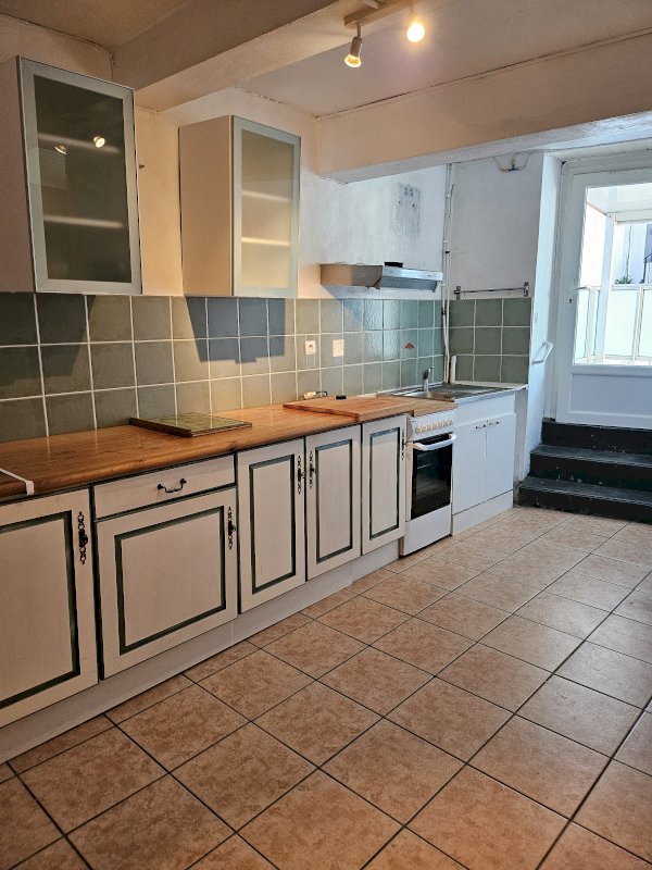 1ere etage: cuisine donnant sur terrasse, salle à manger et une chambre, wc