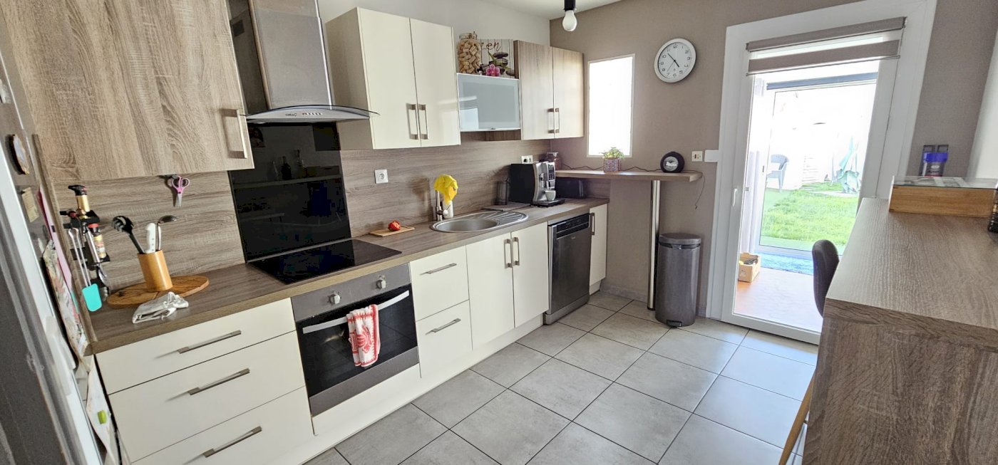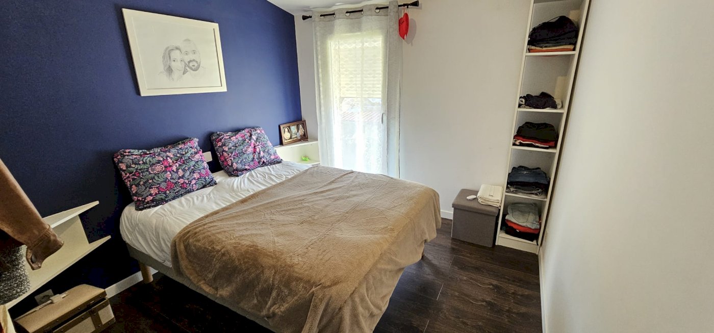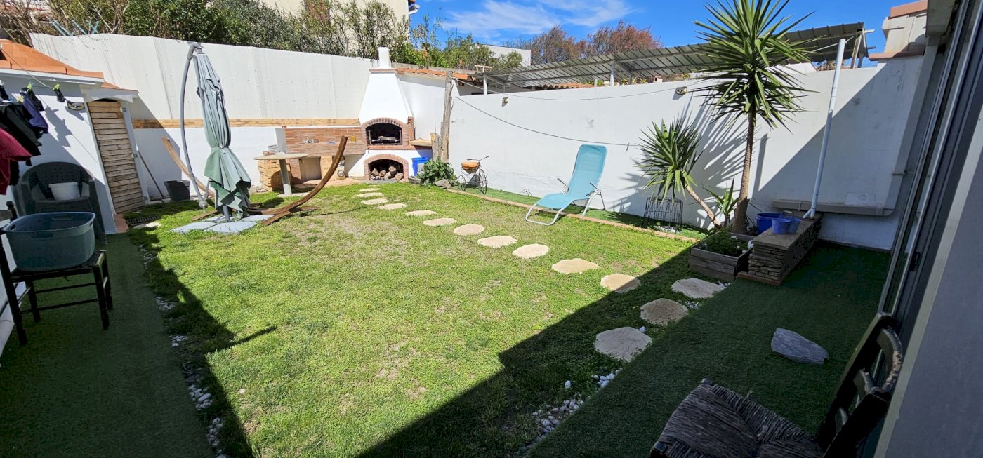 À Cabestany , maison 2 faces ,avec garage plus une place parking à l’intérieur de la cour , disposant d’une d’entrée avec placard, cuisine , salon , 3 chambres à l’étage , un wc au rdc et une sale d’eau avec WC a l’étage , double vitrage, climatisation réversible, jardin à l’arrière avec barbecue