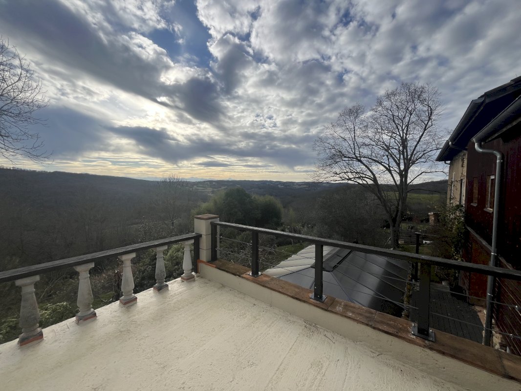 Propriété commingeoise au cœur d’un parc paysager de 9 349 m², constituée par une maison de 210 m² et un gîte indépendant de 75 m². Calme absolu et panorama exceptionnel sur la chaîne des Pyrénées. Maison en pierre et bardage bois avec : en rez de chaussée : un grand séjour-salle à manger de 54 m², avec une belle cheminée, qui ouvre sur une terrasse abritée en bois et composite exposée sud face aux Pyrénées. Une belle cuisine avec ilot central équipée et semi ouverte avec un cellier / buanderie et un accès terrasse. Un salon bar home cinéma ou de loisirs et un deuxième petit salon cosy. Un WC indépendant. À l'étage : l'escalier donne sur un palier / bureau de 24 m² (poss. 2 chambres sup.) la chambre parentale de 17 m² avec dressing, salle d'eau et sa baie vitrée donnant sur une grande terrasse dédiée avec vue sur les Pyrénées. Deux chambres de 12 et 16 m², avec chacune leur salle d’eau privative. Un WC indépendant. Aucuns travaux à prévoir. Excellente performance énergétique DPE B / GES A. Confort thermique assuré par une climatisation intégrale et réversible avec 6 unités totalement indépendantes. Ballon thermique intelligent. Fibre optique haut débit (10 gbits / s) le gîte climatisé aménagé et totalement indépendant de 75 m² avec : en rez de chaussée : un salon avec baie vitrée donnant sur une terrasse en bois. Une cuisine ouverte avec un cellier et un wc. Une grande chambre avec sa salle d'eau et dressing. Un 2ème cellier, buanderie et rangement. À l'étage : en mezzanine, une seconde chambre offrant d'autres fonctionnalités. En extérieur : un garage aménagé en rangement et atelier d'environ 70 m². Une mare, un abri voiture pour deux véhicules, portail d'entrée avec caméra de surveillance et visiophone. Proche de toutes commodités à 7mn de l'A64 vidéo drone sur demande