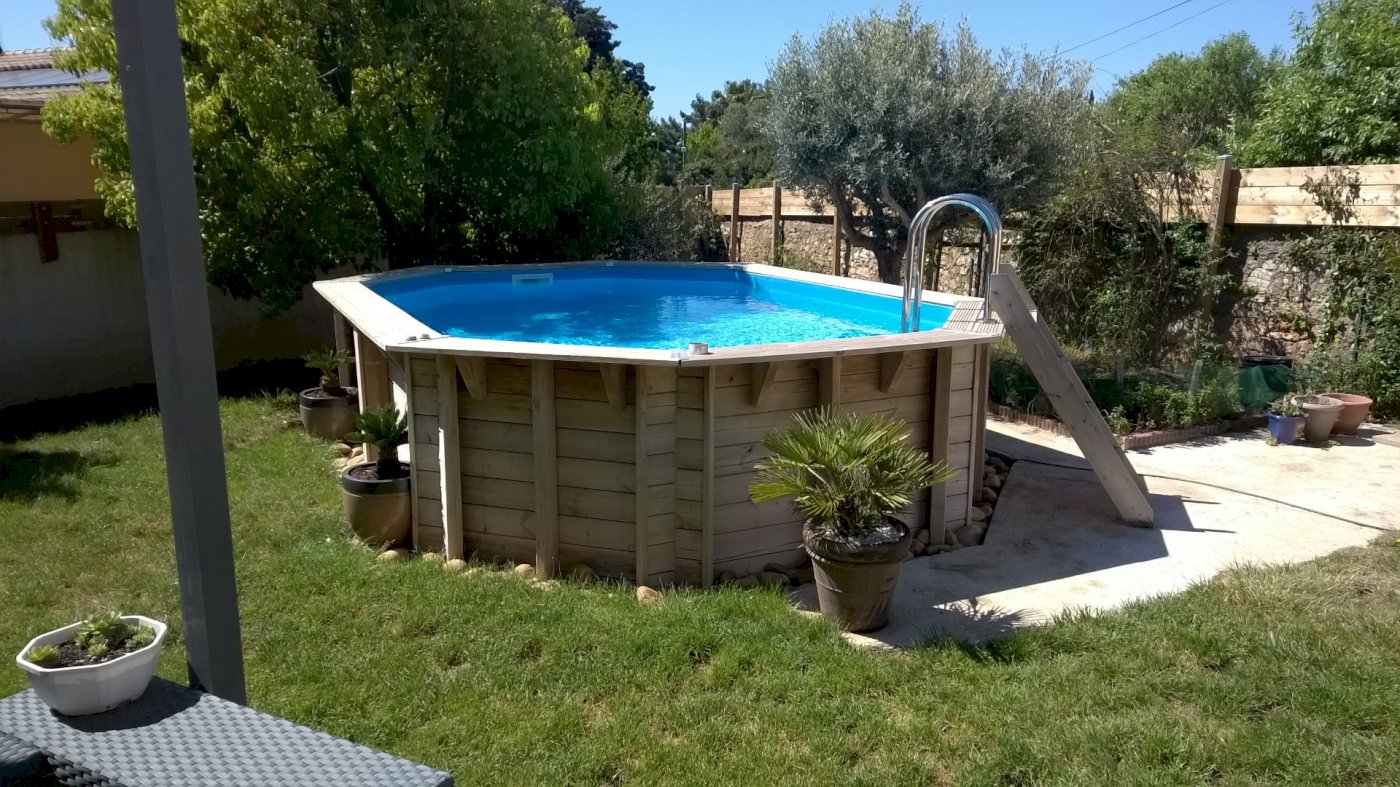 piscine hors sol (5,5 x 3,5 m), cuisine d’été, jardin agréable et facile d’entretien, un forage avec arrosage automatisé.