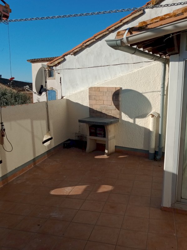 La maison très claire sur 2 niveaux avec un balcon et en haut une terrasse 20m² sans vis a vis exposée au sud, barbecue et point d'eau.