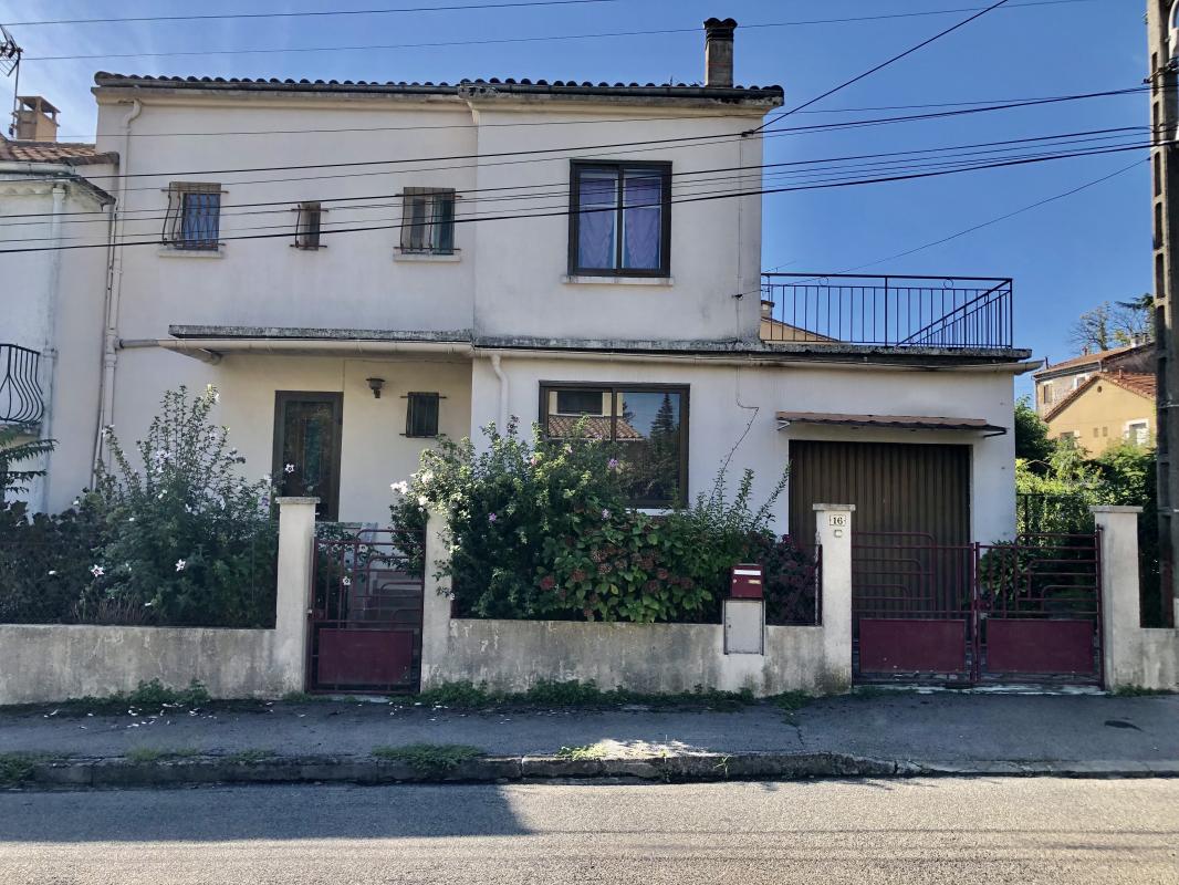 A vendre maison mitoyenne d un seul côté annee 1960 a étage sur un terrain de 370 m2 comprenant au Rdv, 1 cuisine, 1 chambre, une salle à manger avec salon, 1 wc, une salle d eau; a l étage : 1 wc , 1 salle d eau, 3 chambres ,1 salon, terrasse de 40 m2. Garage et grande cave sous la maison de 50m2.Chauffage central gaz de ville. Bien situé quartier calme de la Prairie Ales a 10 minutes à pied du centre ville.Diagnostics réalisés catégorie D.