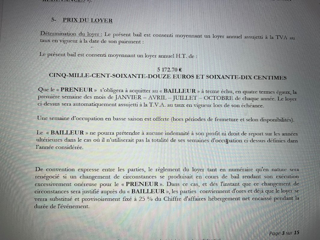 -Revenus annuels actuels : 5690 € TTC , loyer mensuel versé chaque trimestre, que l’appartement soit loué ou non, avec révision du loyer tous les 3 ans sur la base de l’indice INSEE des loyers commerciaux. ILC. (Pour info : prochaine augmentation prévue dès le 01/01/2027 qui sera comprise entre 350 € et 450 € /an, soit à partir du 01/01/26, un loyer annuel d’environ 6000 € TTC)