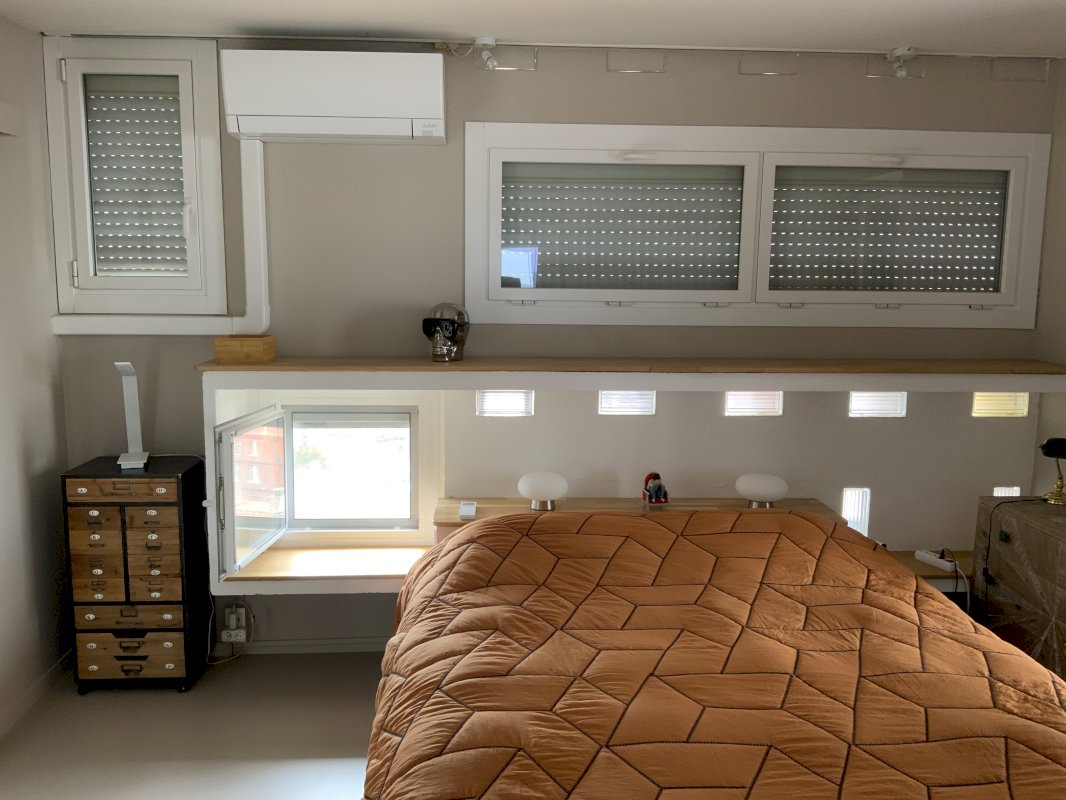 Grand T2 traversant face à la basilique ST SERNIN quartier des chalets au dernier étage d un immeuble sécurisé. Aucun vis à vis et très lumineux. Rénové en 2024. Grand séjour /cuisine ouvert, chambre spacieuse, espace bain/ douche/ wc confortable.cuisine équipée.chambre et séjour meublé. Chauffage Clim réversible. Bien à usage habitation et professionnel.Garage fermé de 18 m2 en sous sol.
