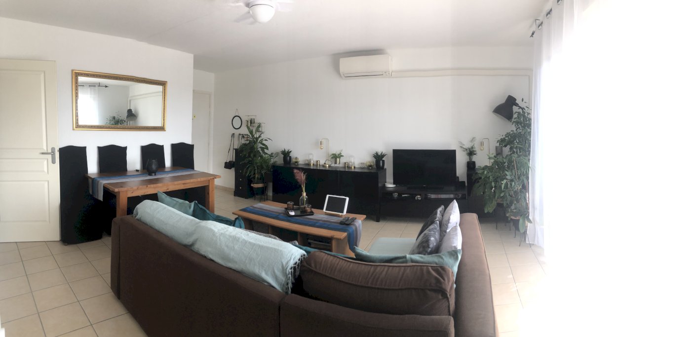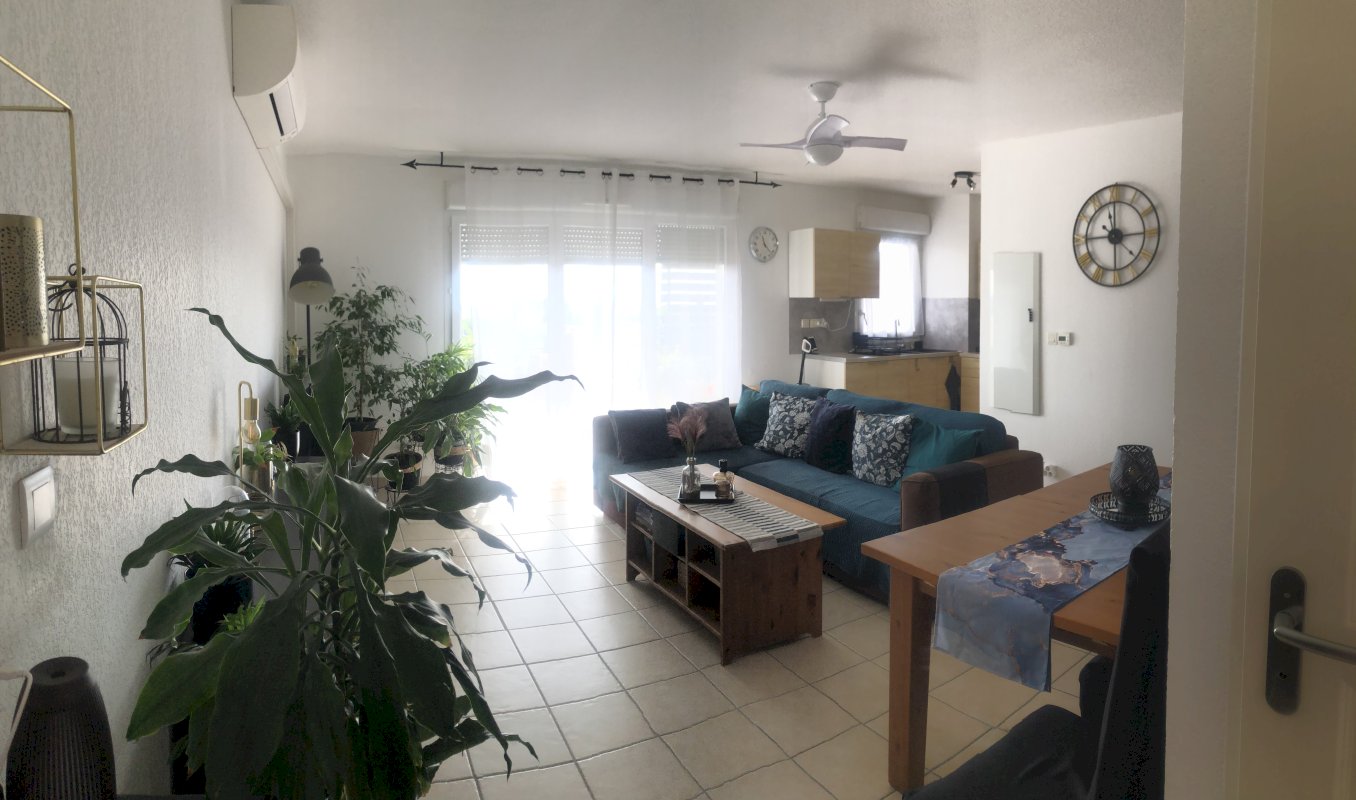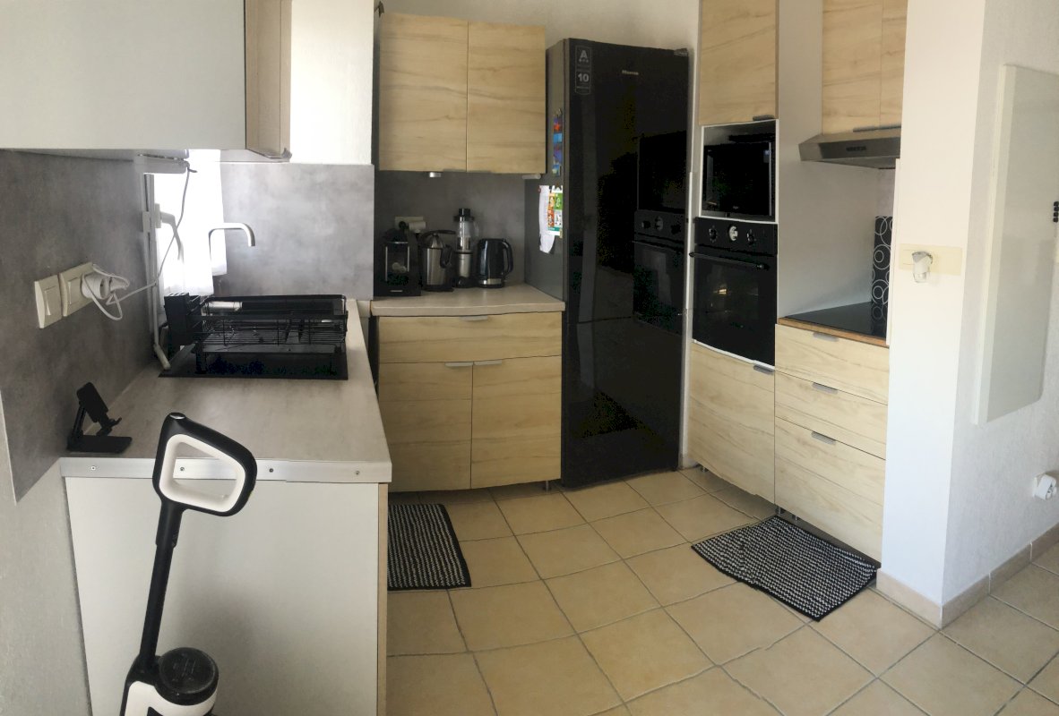 - D'un salon/séjour très lumineux avec climatisation réversible, une cuisine ouverte toute équipée.
