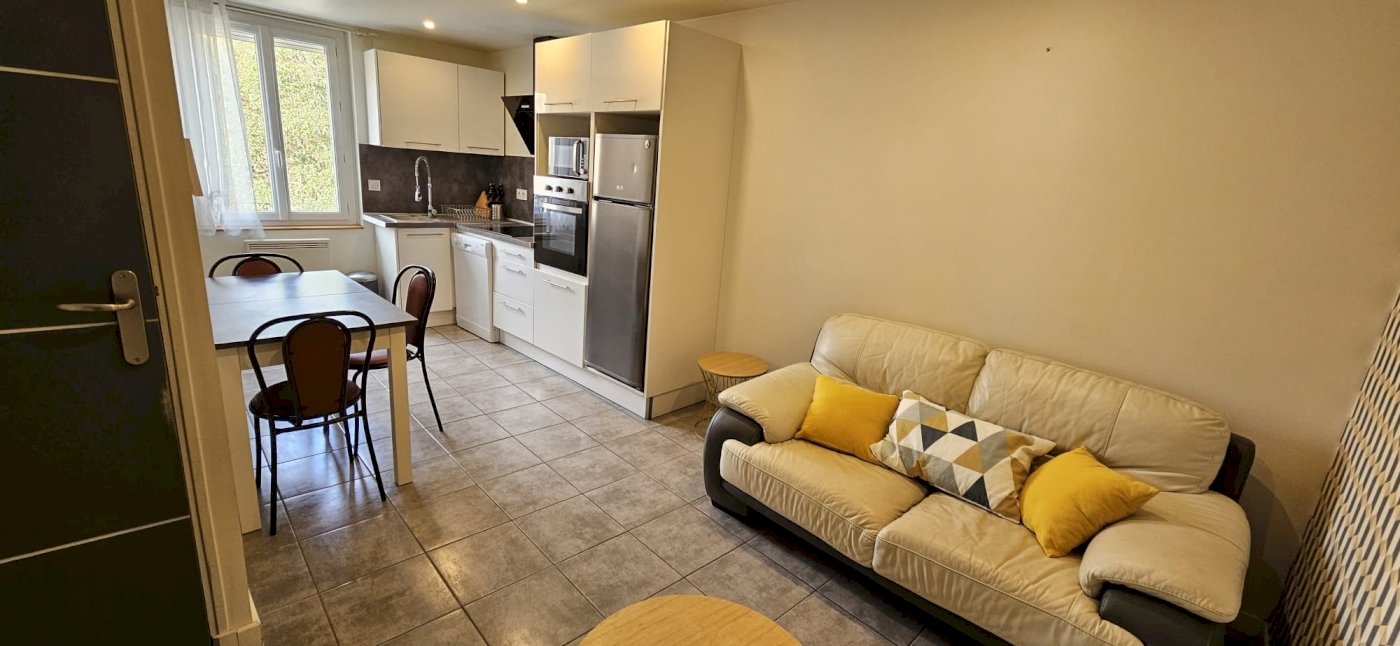 • Étage 1 : Cuisine aménagée et salon.
