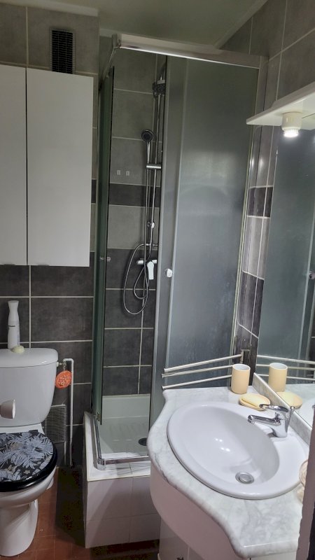 Il se compose d'une pièce de vie avec une cuisine aménagée, d'une chambre (pouvant accueillir un lit de 140 cm), d'une salle d'eau avec toilettes, d'un petit cellier avec lave-linge, et d'une belle véranda aménagée en salon. Une place de parking privée est également incluse.
