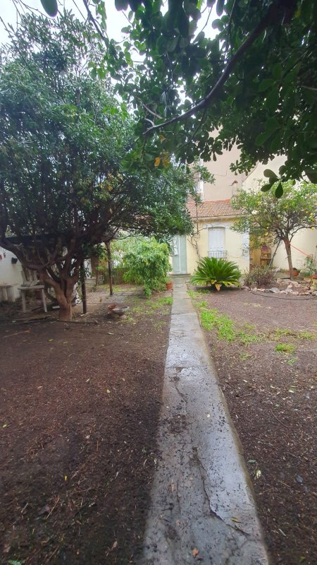 Jardin méditerranéen arboré et ombragé très agréable à la belle saison : citronnier, grenadier, palmier, laurier, bignone, bambou, cycas. Pergola.