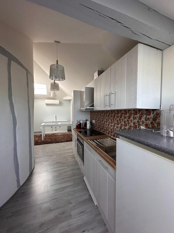 +Combles aménagés en espace de vie chaleureux : salon, cuisine équipée, 2 chambres, salle d’eau et WC;