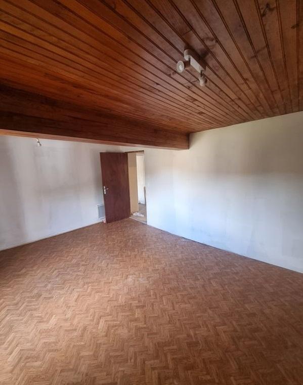• A l'étage, 2 chambres. Chambre 2 fenêtres sur photo 13 m², deuxième chambre 17 m². Salle de bains refaite.