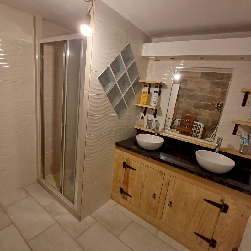 A l'étage, deux belles chambres avec une salle de bain chacune. Une baignoire pour l'une et une douche pour l'autre.