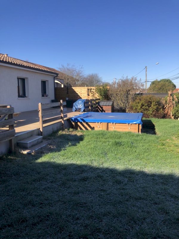 Côté extérieur vous pourrez profiter d'une grande terrasse, d'un beau jardin arboré au calme sans vis-à-vis ainsi que d'une piscine semi enterré (moins de 15m3 non imposable) pour vous rafraîchir.