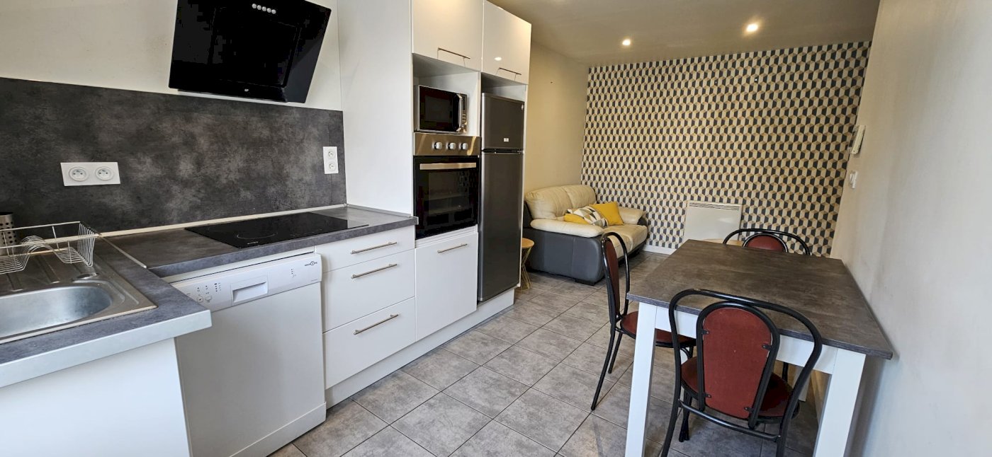 • Étage 1 : Cuisine aménagée et salon.