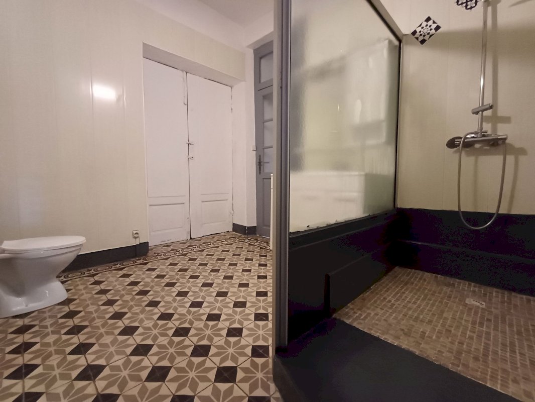 Rez de chaussée avec garage de 110m² et bureau indépendant de 18m² communiquant avec chambre au 1ere étage.