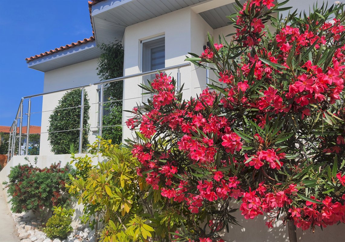 Construite en 2021 sur Terrain paysagé de 420m² en angle de la résidence du Clos des Arcades.