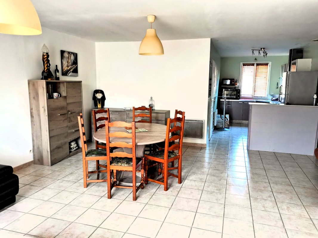 *Salon - Salle à manger de 35 m2 ouvert sur cuisine entièrement aménagée et équipée donnant accès par une porte fenêtre à une terrasse de 15m2 et au jardin sans vis à vis à l'arrière