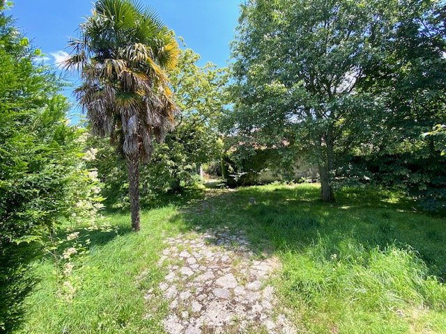 La maison se trouve sur un terrain plat arboré de 1 200 m² au coeur du village, et elle est construite entièrement en pierres.
