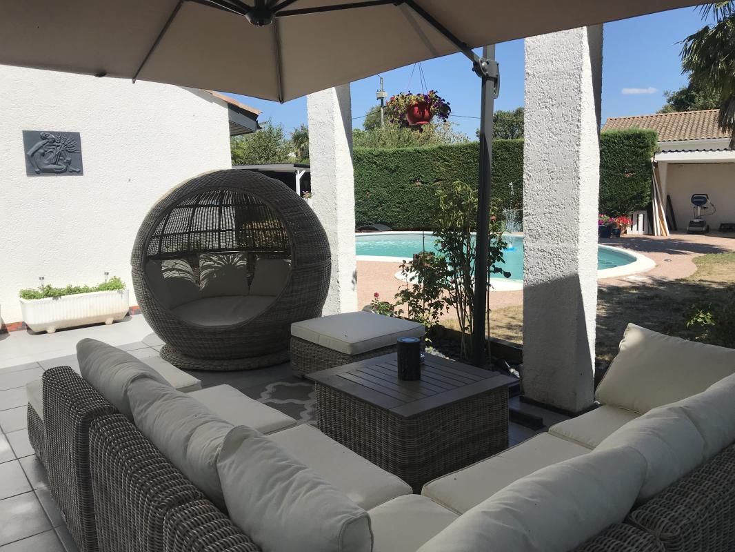 Villa avec 1 étage, 5 chambres dont une avec dressing, 2 car port, piscine avec balneo, pool house, bungalow, 2 salles de bains, 2 wc, panneaux photovoltaïques pour la revente et pour l'auto-consommation.
