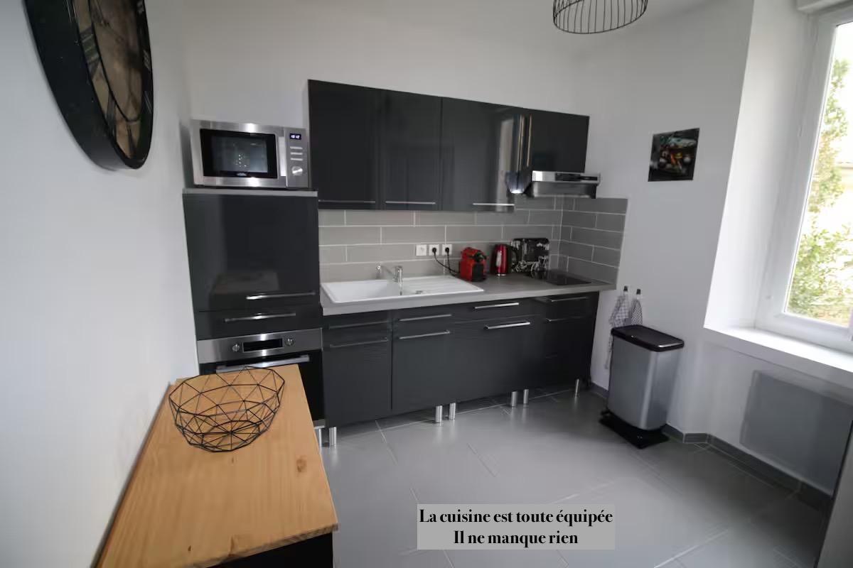 • Cuisine séparée entièrement équipée Tout le nécessaire est sur place : grand réfrigérateur-congélateur, Lave linge, Nespresso, bouilloire, grille-pain…