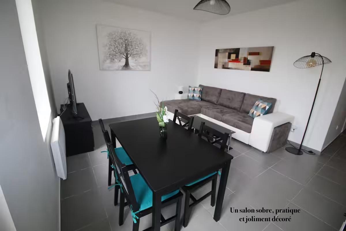 • Un espace de vie lumineux et élégant Grand salon décoré avec goût, doté d’une méridienne très confortable pour accueillir jusqu’à 2 personnes.