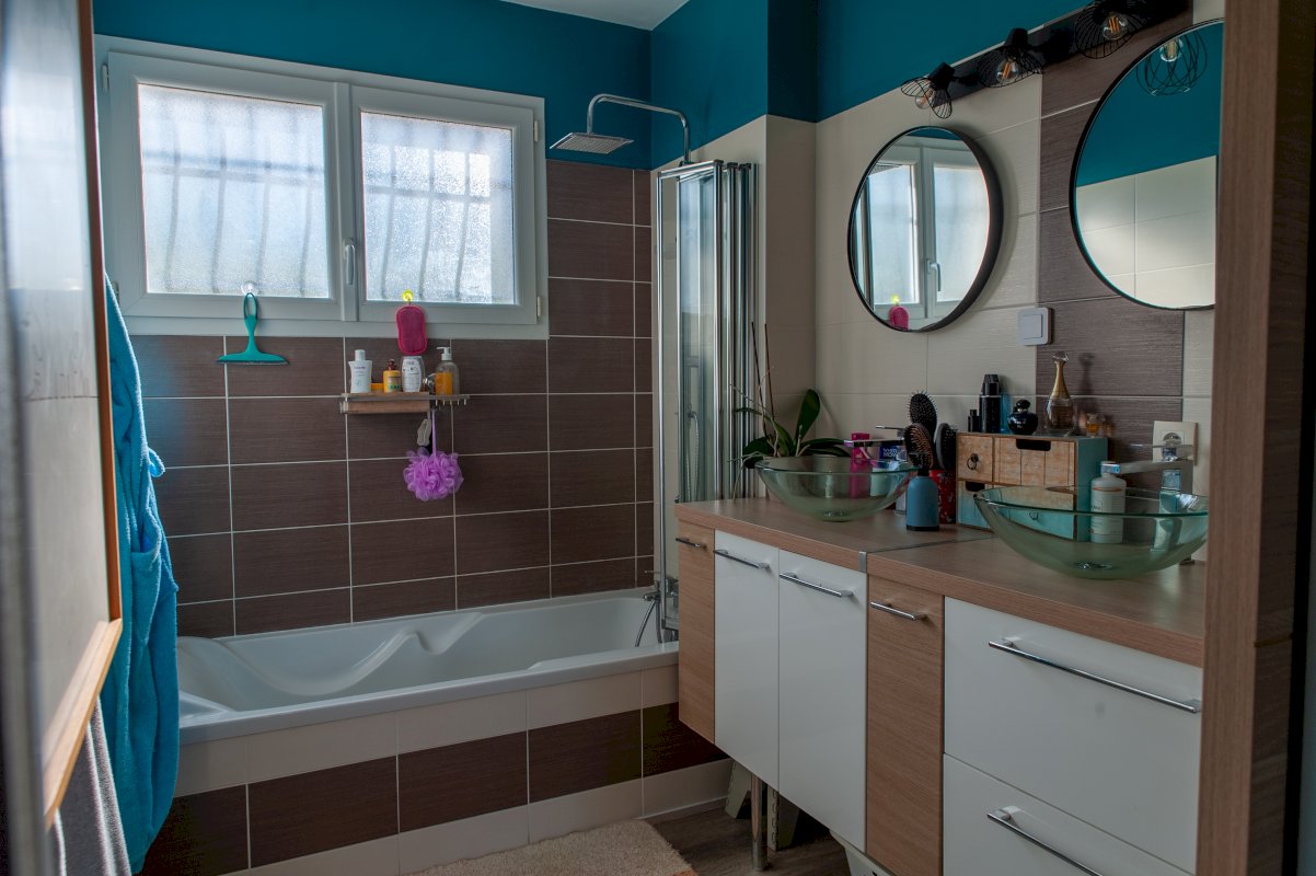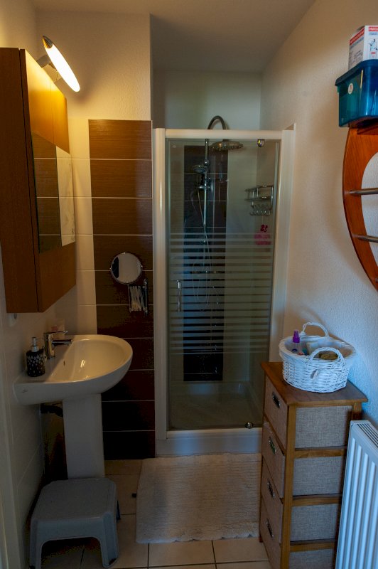 - à l’étage de 3 chambres à coucher (10,5 m² ; 9,5 m² ; 9 m²) et d’une salle d’eau.