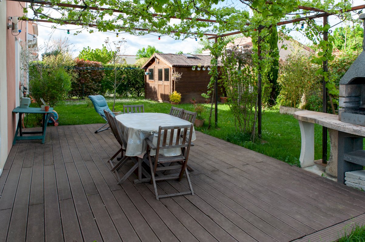 Un garage attenant de 16 m², un abri de jardin de 11 m² et une terrasse de 23 m² avec barbecue viennent compléter l’ensemble.