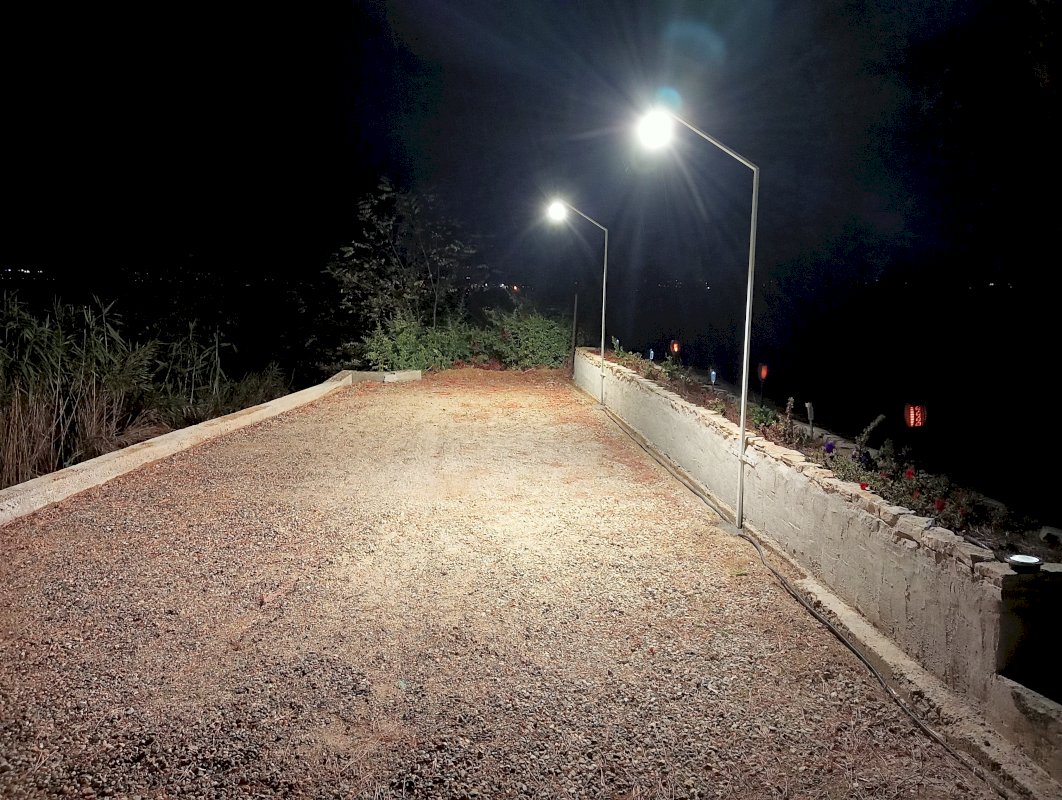 Le chemin d’accès est pourvu d’une bordure avec éclairage solaire
