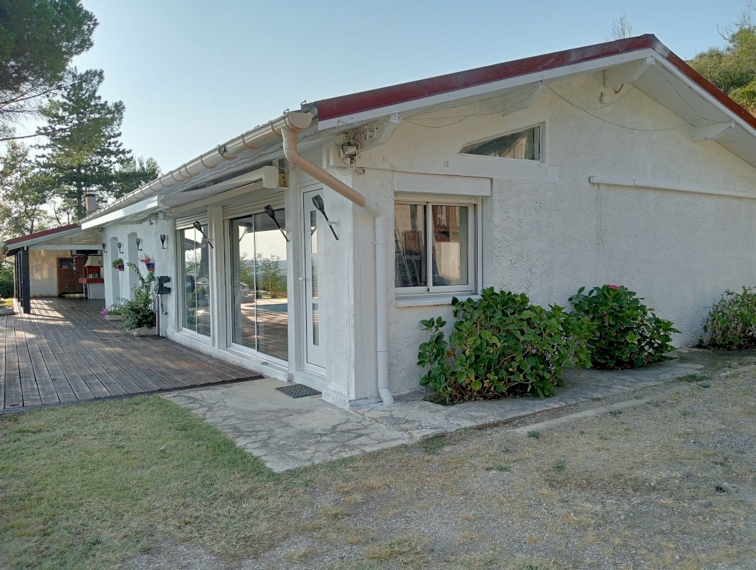 Partie principale de 85 M2 comprenant 1 grand séjour avec une cheminée en pierre à foyer ouvert et 1 cuisine équipée avec 1 bar, 2 chambres + 1 bureau ( ou 3 chambres ) 1 salle de bain ( douche et meuble double vasque ) sèche serviettes, wc séparé, baies vitrées donnant sur une terrasse couverte de 30 M2 ( vue sur les pyrénées ) muni d’un barbecue sur plan, le tout en pierre, terrasse couverte derrière de 21 M2 servant de buanderie,