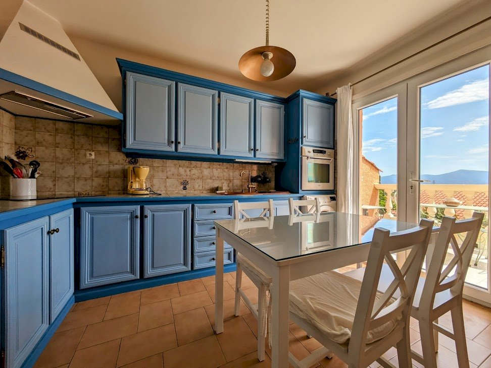 La partie principale de la maison d'une superficie de 120m2 environ sur deux niveaux (rez-de-chaussée et premier étage) dispose de 5 chambres spacieuses avec placards, dont une suite parentale au rez-de-chaussée. Vous bénéficiez également d'un vaste séjour traversant et d'une cuisine séparée toute équipée avec chacun leur accès direct sur la terrasse avec sa vue à couper le souffle. Toutes les pièces disposent de larges fenêtres ou baies vitrées, sont spacieuses et lumineuses. Une salle de bains et 2 WC séparés complètent cette partie qui dispose d'une cheminée, d'une climatisation réversible et d'un chauffage central au gaz.