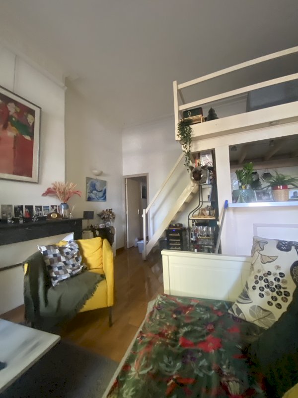 Belle pièce de vie conviviale avec cuisine ouverte et mezzanine (parfaite pour un bureau, un coin nuit ou du rangement).