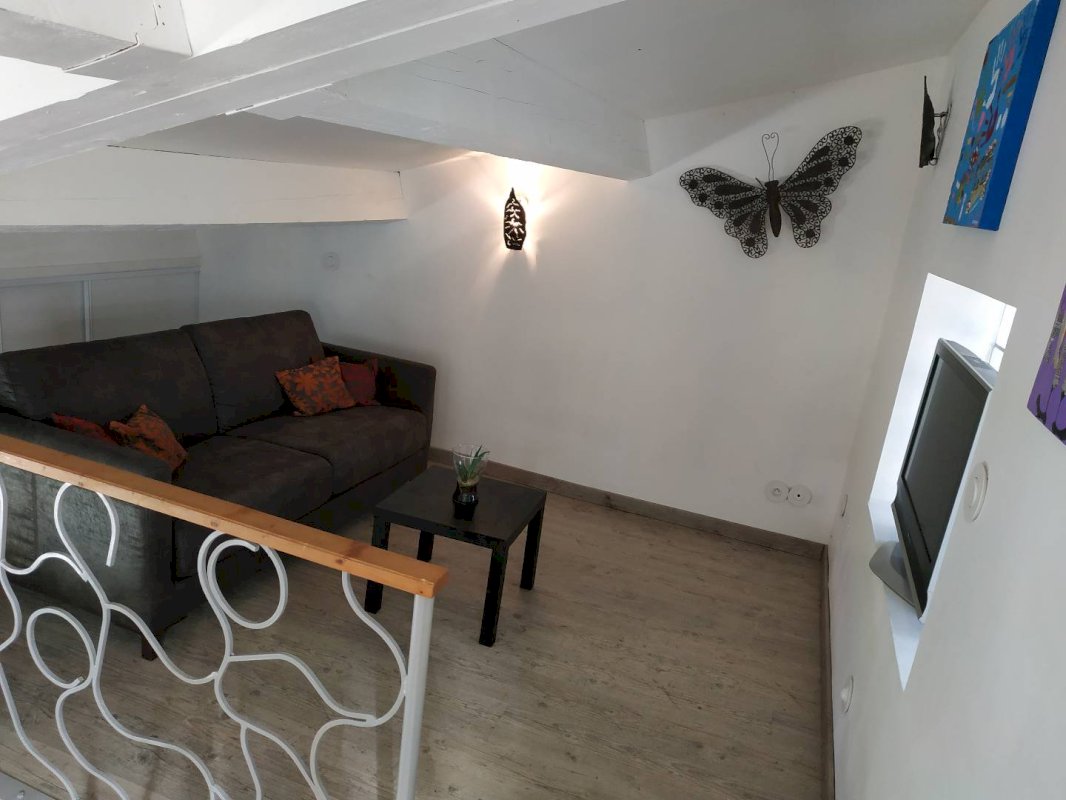 Mezzanine avec une chambre et une salle tv ou lecture
