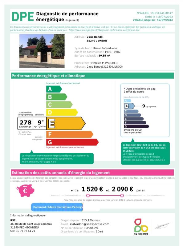 Émission à effet de serre : en classe B (9kgs CO2/M3/an).