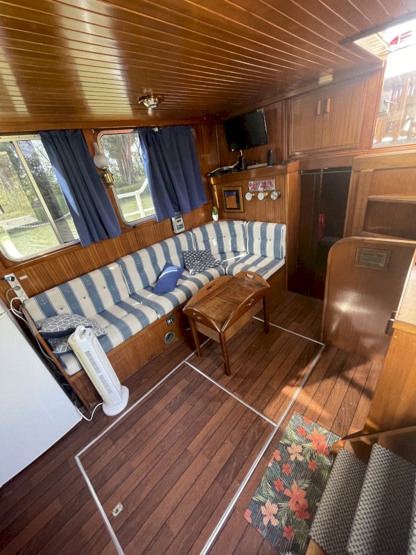 Vivre à l'année ou occasionnellement sur un bateau, une Vedette Hollandaise de 45 m² avec tout le confort, c'est possible, facile, c'est plus grand qu'un MobilHome et moins cher qu'un appartement. On peut le stationner à l'année sur un emplacement dans le port de son choix, que ce soit sur le canal du midi par exemple ou sur un port maritime. On peut en faire un "pieds a terre" pour les vacances ou les week ends, On peut évidemment naviguer quand on veut, la mécanique est en parfait état de fonctionnement. On peut aussi le louer en AirBandB logement insolite... et tout cela sans taxe fonciere.