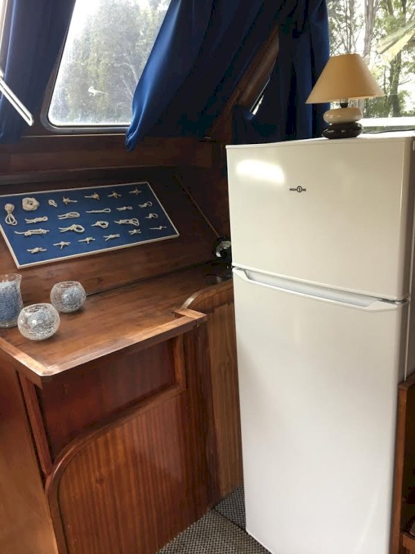 La vedette est toute équipée pour vivre de suite. Une kitchenette, 2 chambres, un WC, une douche, une grande terrasse (pont supérieur), 2 panneaux solaires pour charger les batteries et avoir du 220 volts, une réserve d'eau de 400 litres suffisante pour 1 mois a 2 personnes. Les draps, couettes, serviettes, couverts, batterie de cuisine, table chaises, télé, radio etc.. tout y est, il n'y a plus qu'a rentrer ! les seuls frais annuels sont le droit de port (entre 500 et 1500€ par an selon ou on se trouve), l'assurance (entre 400 à 600€ par an selon les garanties), l'eau et l'électricité consommée si on est branché sur un quai.Un peu de gasoil si on voyage (2,5 litre de gasoil a l'heure). Bref une vie cool au fil de l'eau.