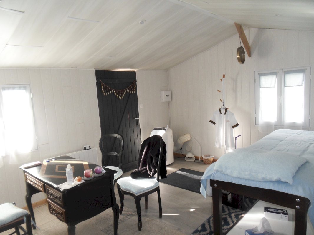 Un chalet bois,avec 2 places de parking, aménagé en bureau pour activité professionnelle ou chambre d'ado.