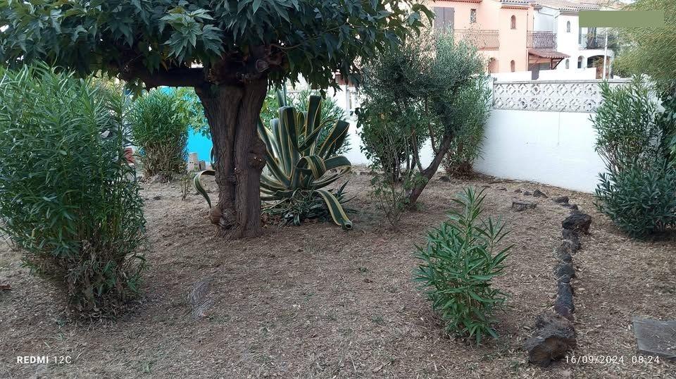 - Garage, terrasse, jardin arboré à l'avant de la maison, et grande piscine traditionnelle à l'arrière de la maison avec coin barbecue, douche et WC.